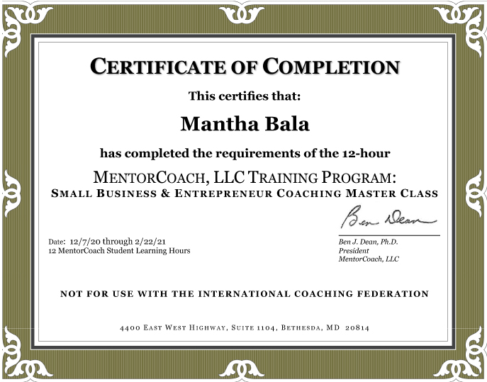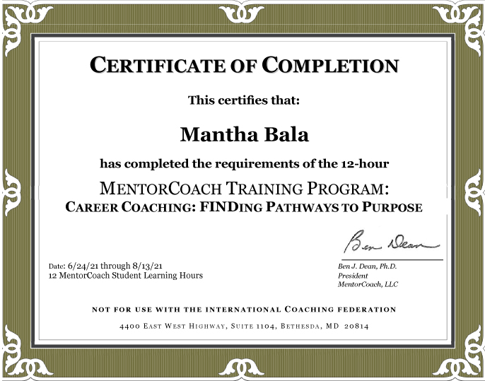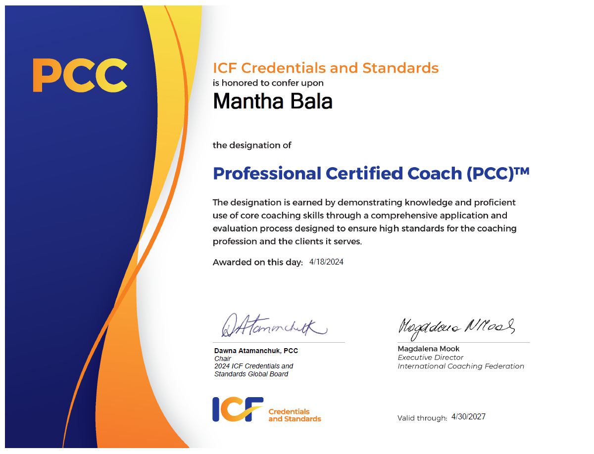 This is where Mantha Bala comes in. Using my coaching competencies, I help you to tap into your own